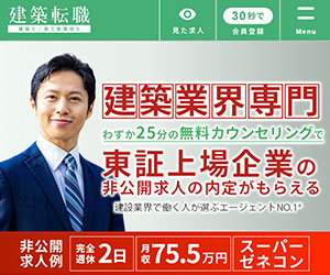 中堅〜大手ゼネコンから設計事務所まで幅広く求人があるイメージです。担当者のサポートも手厚いため、はじめての転職で右も左もわからない方も安心して利用できると思います。